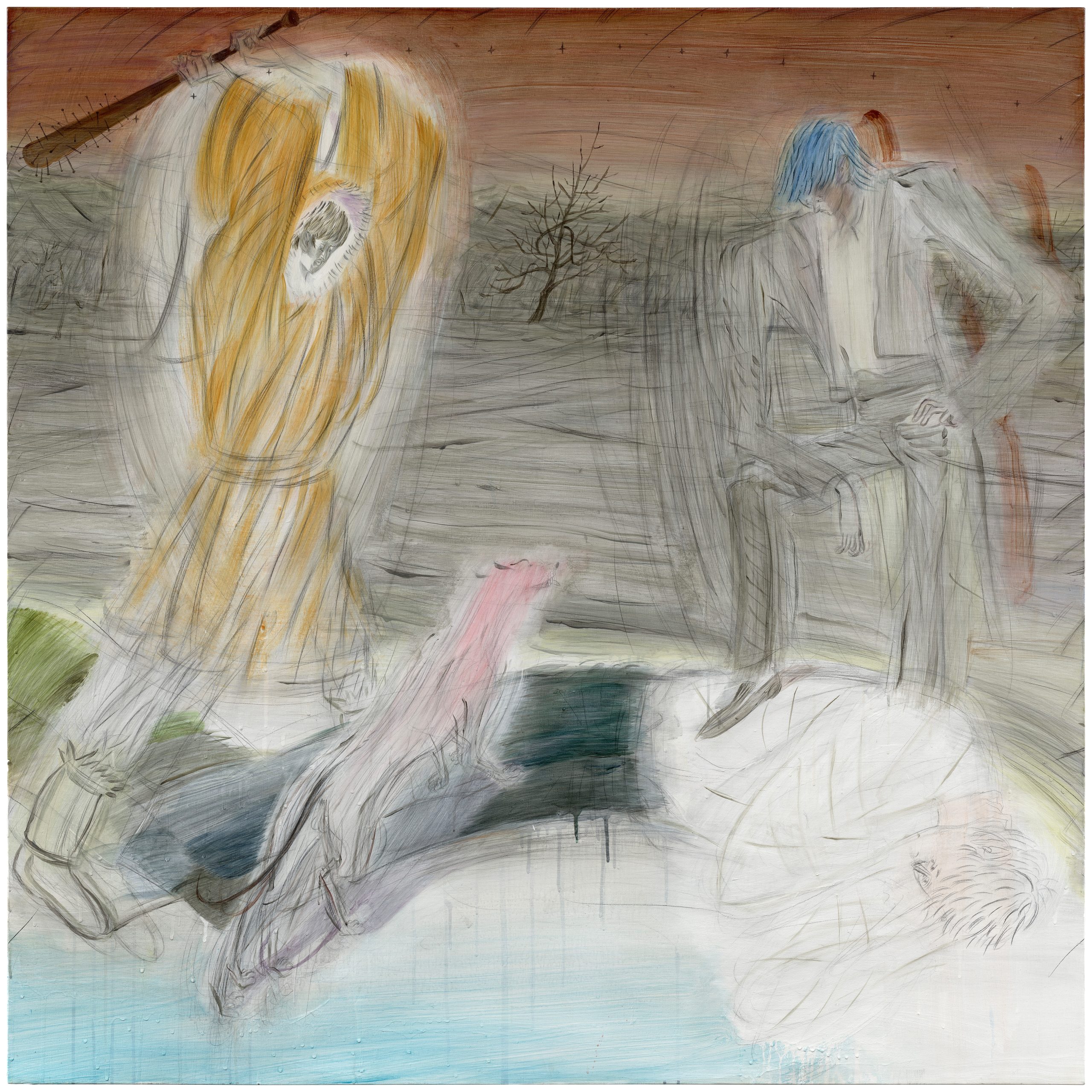 Acrylic, graphite, and pastel on canvas