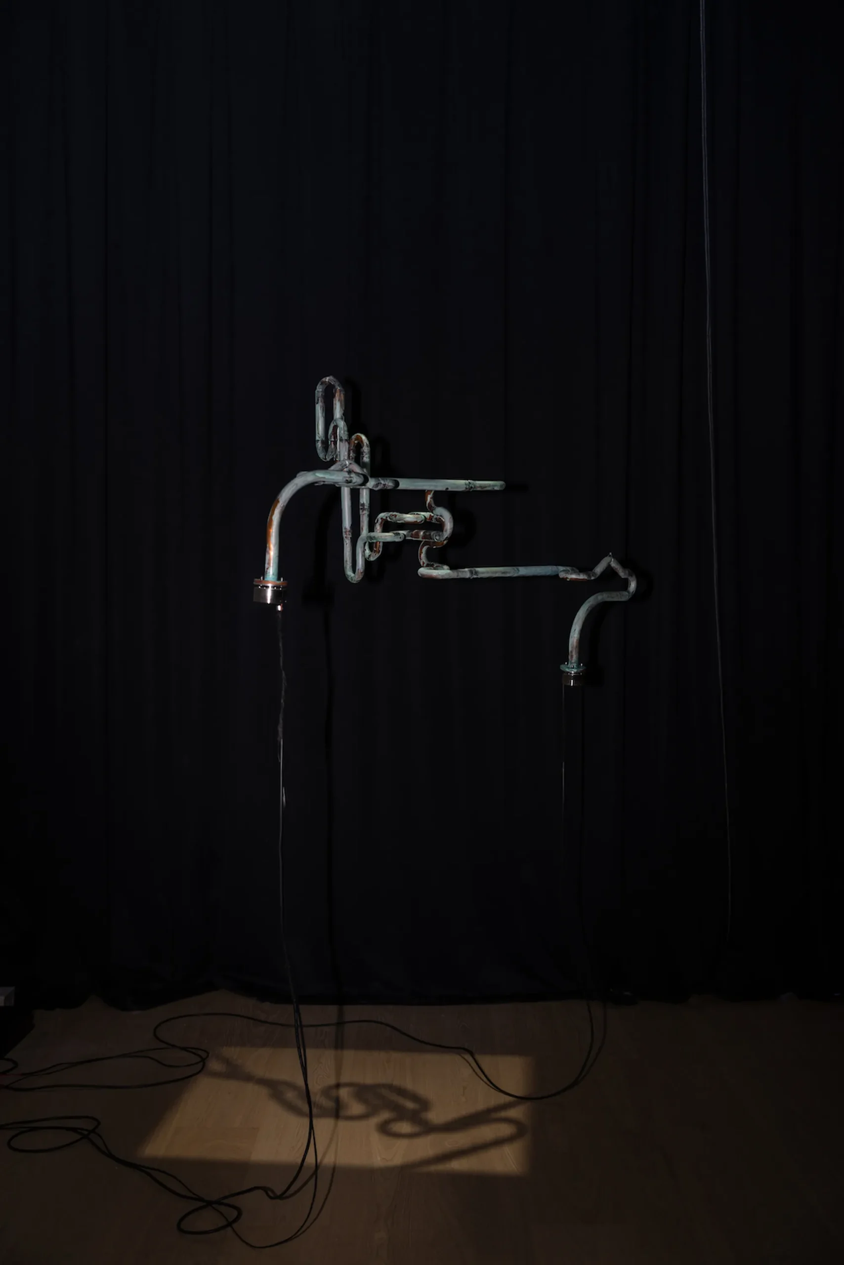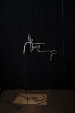 Resonance speakers on corroded copper pipe, FM radio receiver module set to 88.1Mhz, megaphone module