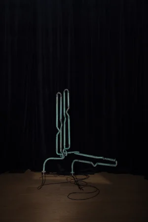 Resonance speakers on corroded copper pipe, FM radio receiver module set to 89.9Mhz, megaphone module