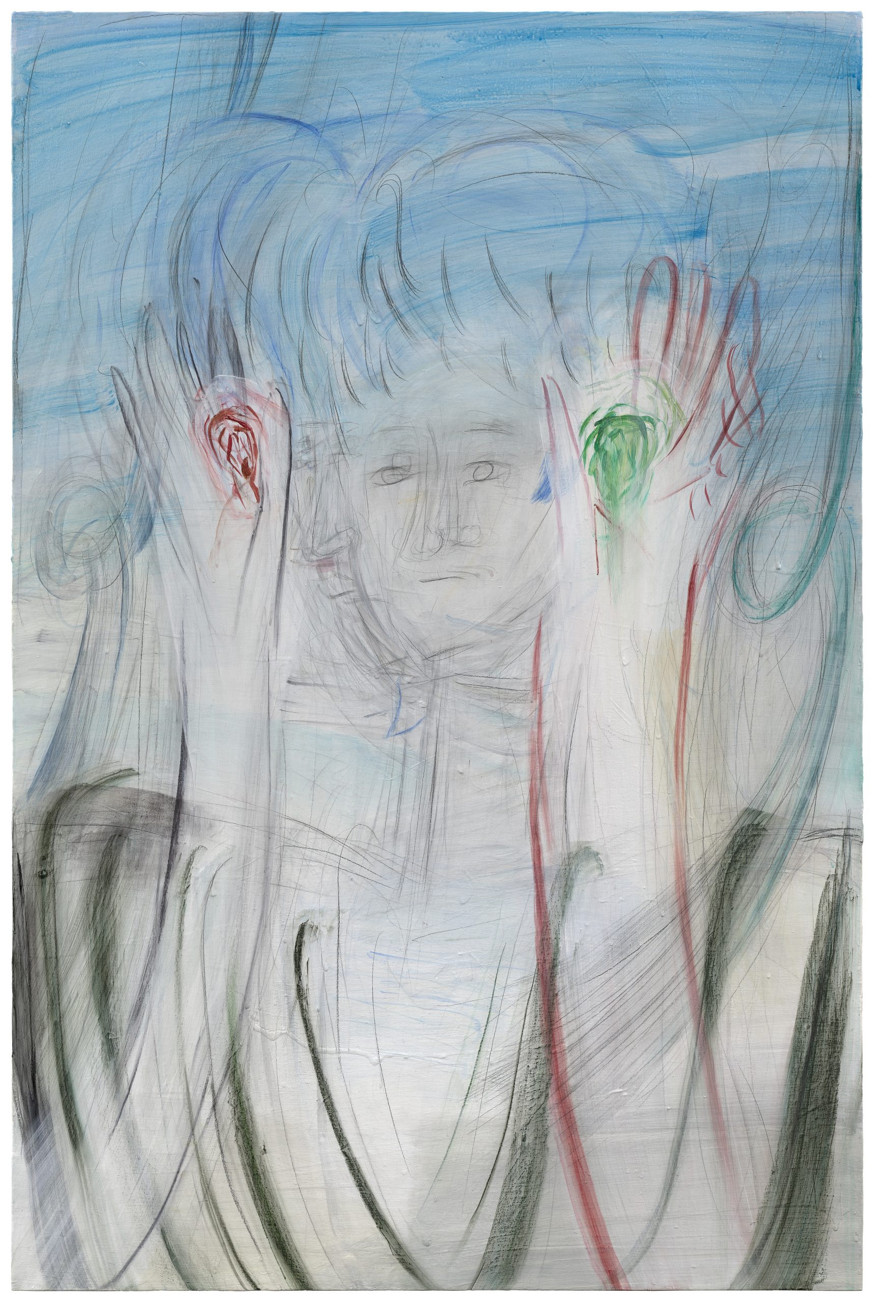Acrylic, graphite, and pastel on canvas